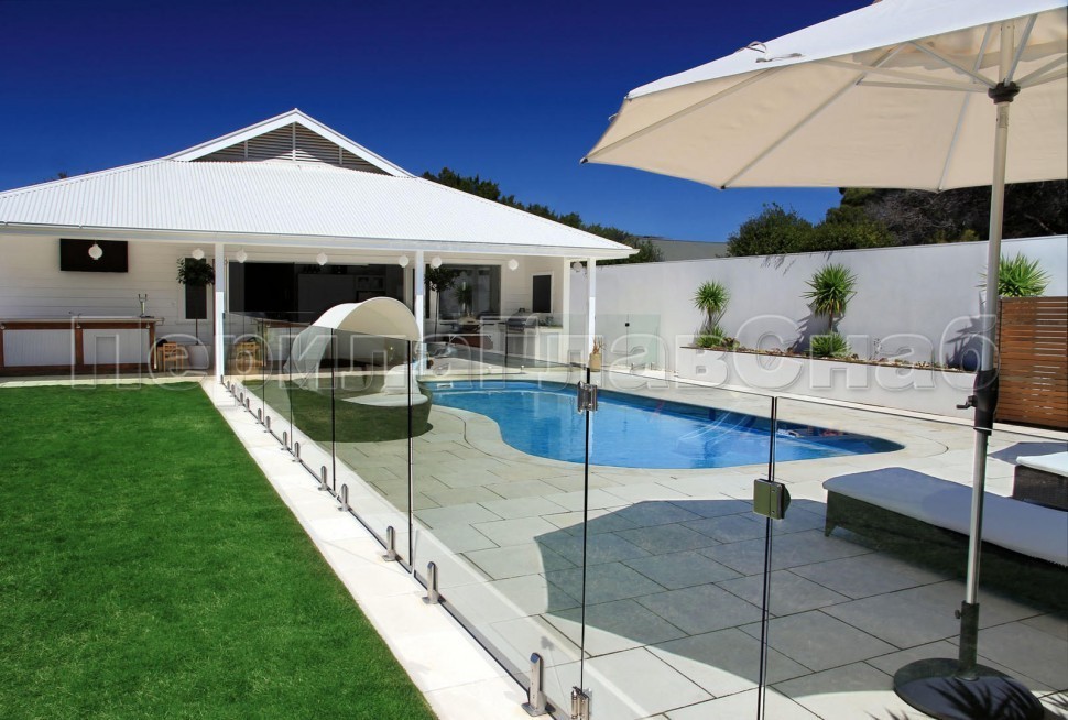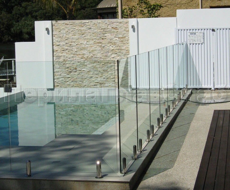 Ветрозащитное ограждение без стоек, на точечном креплении в торец