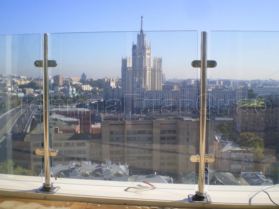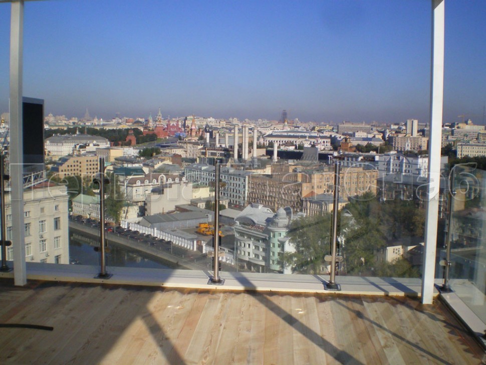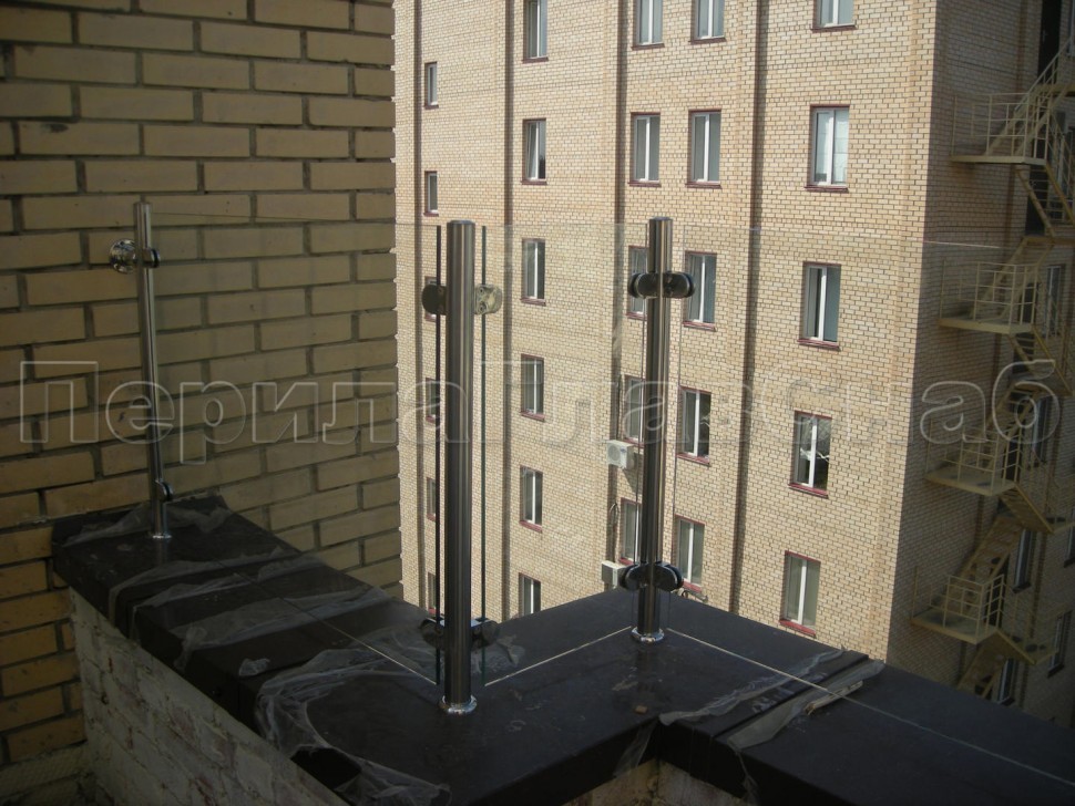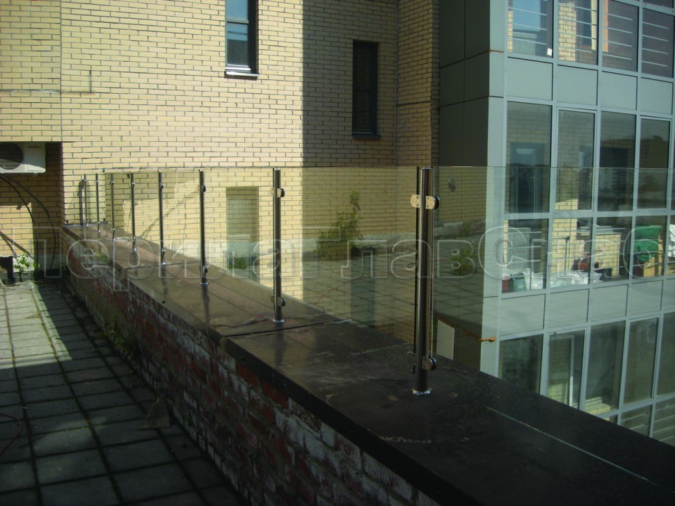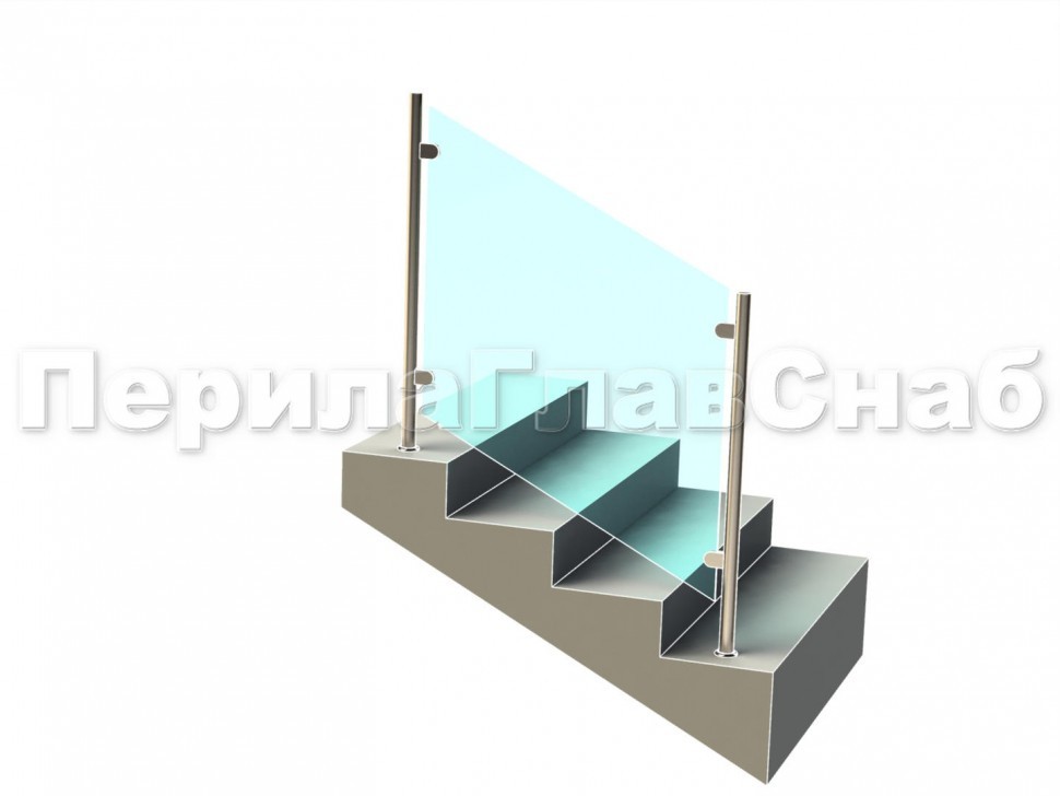 Ограждения лестницы без поручня с зажимными стеклодержателями и стойками