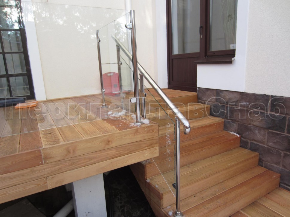 Ограждение для лестницы из нержавейки с зажимными стеклодержателями для крыльца