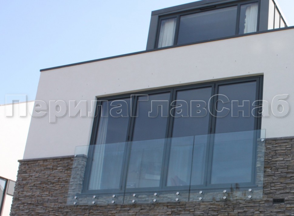 Несущее стекло крепится в торец балконного основания специальными точечными креплениями.