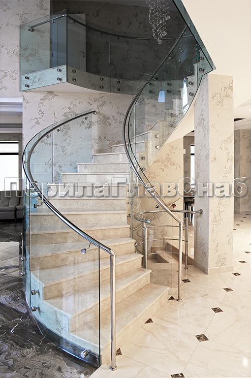 Стеклянные ограждения винтовой лестницы и баллюстрады в Самаре. Готовые проекты ПерилаГлавСнаб