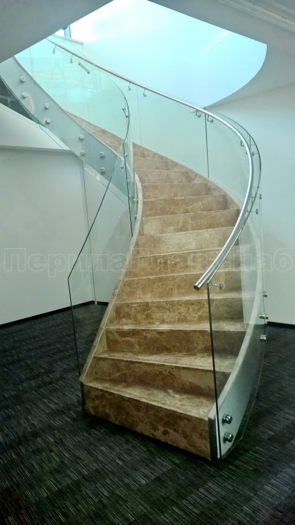 Стеклянные ограждения винтовой лестницы и баллюстрады в Самаре. Готовые проекты ПерилаГлавСнаб - фото 1