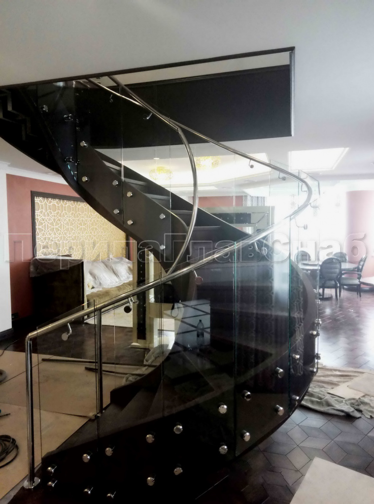 Стеклянные ограждения винтовой лестницы и баллюстрады
