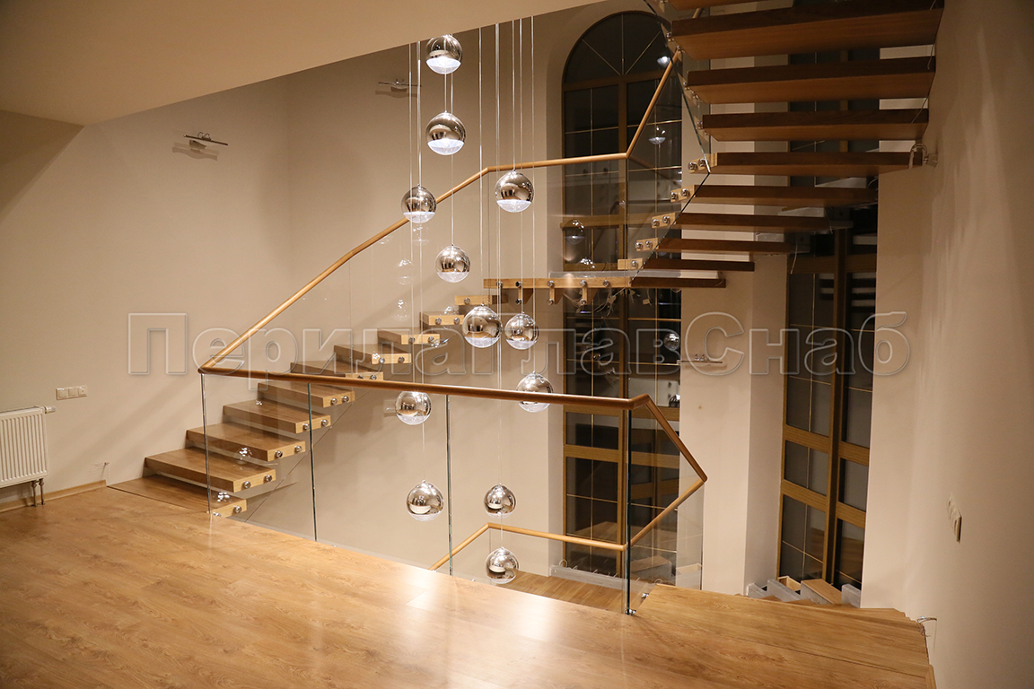 Ограждения лестниц на несущем стекле с подсветкой в Самаре. Готовые проекты ПерилаГлавСнаб