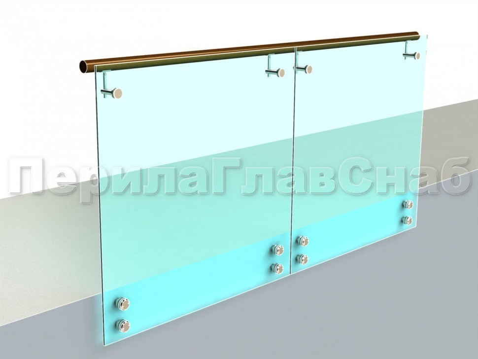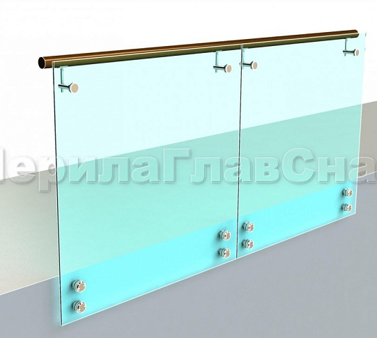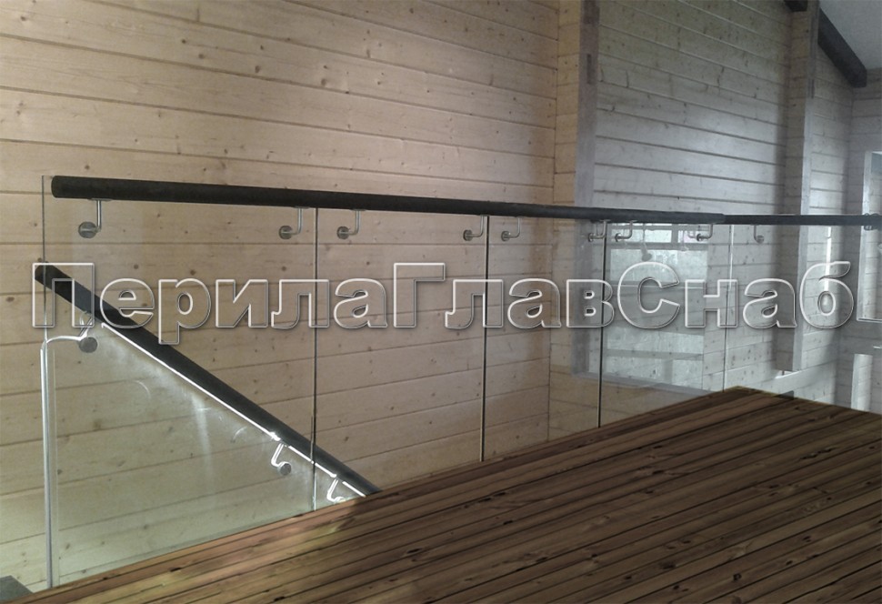 Ограждение с квадратным деревянным поручнем на точечном креплении