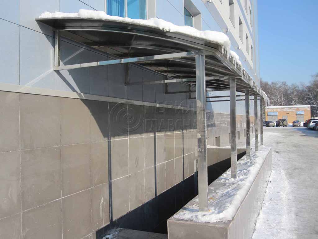 Козырек на треугольном скате на спайдерах в Самаре. Готовые проекты ПерилаГлавСнаб