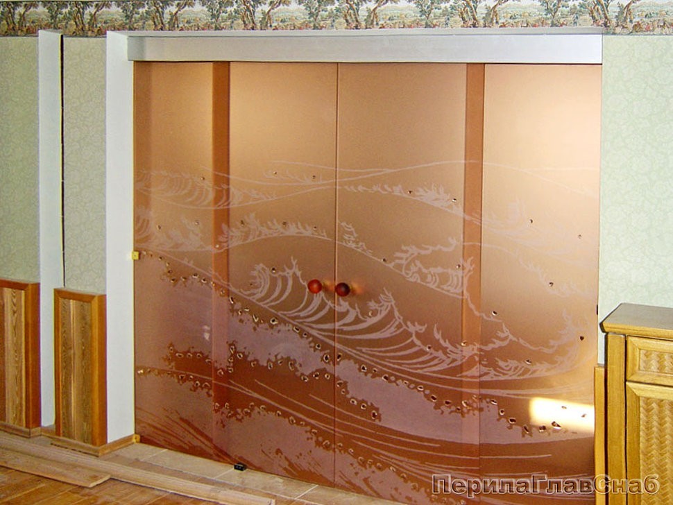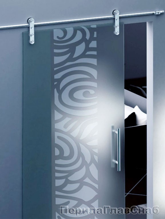 Раздвижные стеклянные двери из матового стекла с рисунком