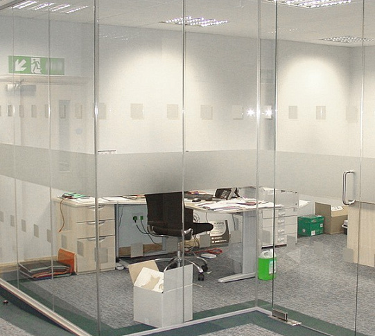 Стеклянные перегородки в офисе с закаткой пленки