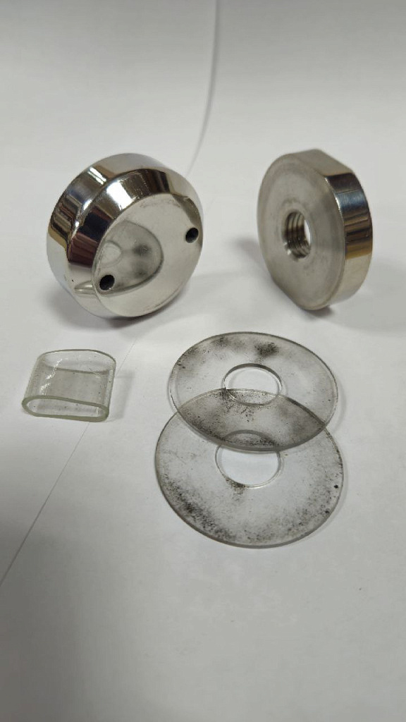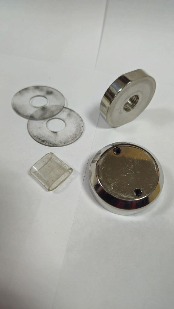 Комплект торцевого крепления несущего стекла, гайка-шайба Ø50х10х18 мм с внутренней резьбой М16(для оцинковки), полированный AISI 304, уценка.